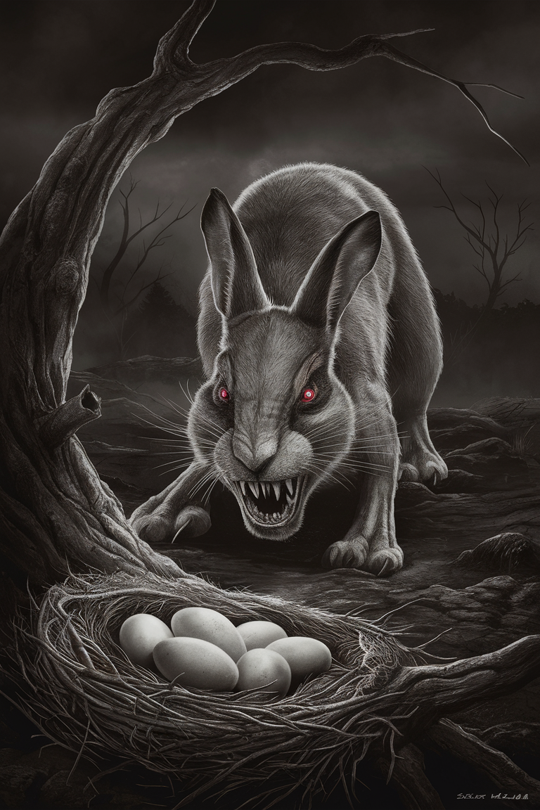 Когда-то очень давно, когда людей и в помине не было, на земле росли огромные деревья, выше гор, а на небе было две луны, жил в лесу заяц-яйцелоп. Именно поэтому, намного позже появилась традиция прятать на пасху яйца от пасхального кролика, но это уже другая история.