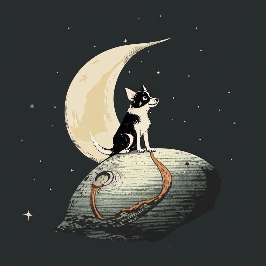 Мелкая опять командует: "Ну давайте же, почти достали, ещё немного, ещё крошечку", все пёсели встали на пальчики, и дотянулась собачандра до Луны самыми кончиками зубов. Выдохнули облегчённо всё собаки, сейчас попадут в собачий Рай.