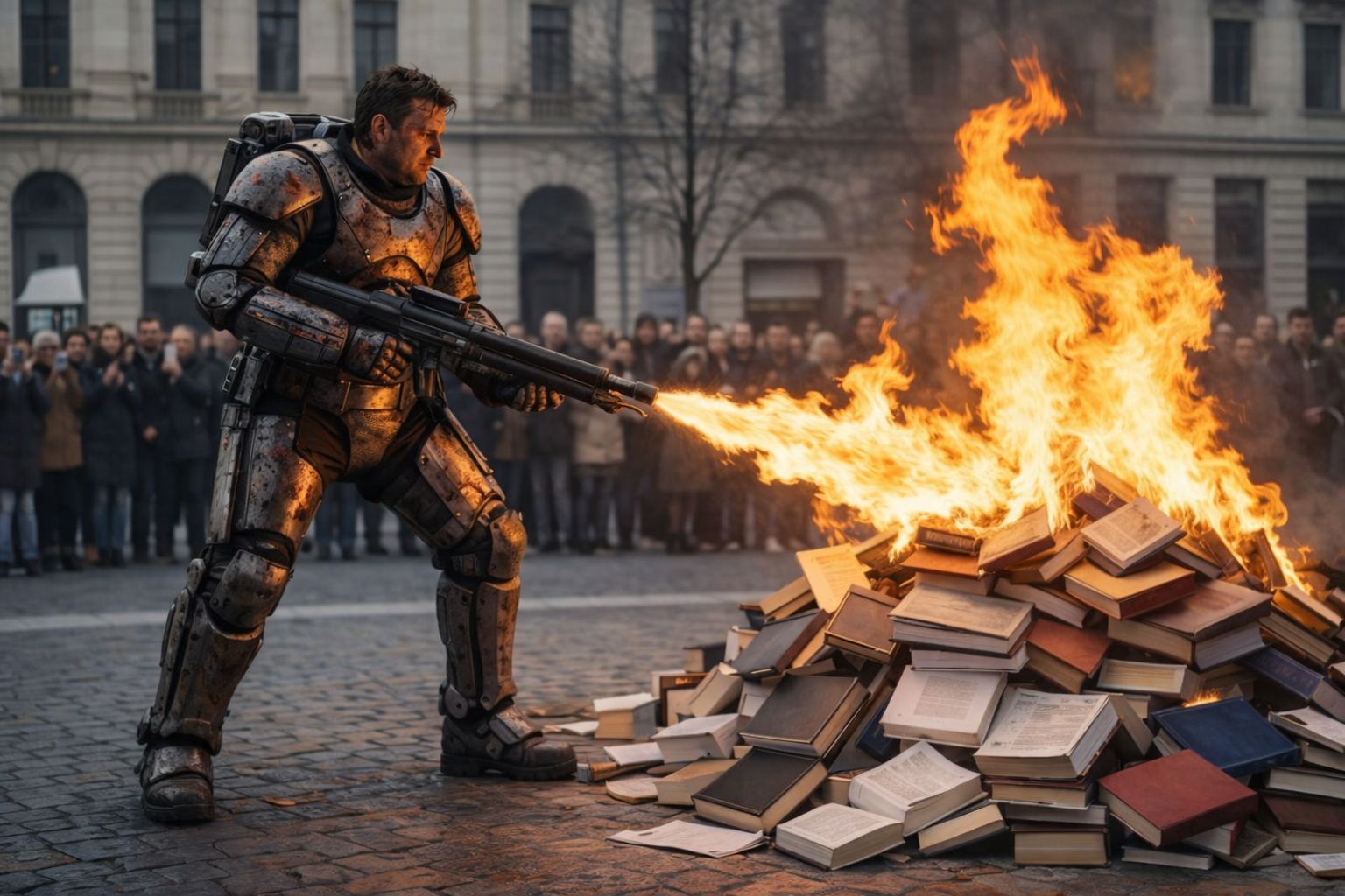 Майк спустился вниз. Его встретил восторженный рев толпы. Он проследовал к огромной бумажной куче в центре площади. Там была уже собрана вся найденная по закоулкам судов юридическая литература. От трудов древнеримских философов и до последней редакции Закона. Майк поднес к краю кучи зажигалку. Щедро политая бензином бумага радостно вспыхнула. В очищающем пламени сворачивались, чернея на глазах, листы, покрытые ненавистными письменами. Никогда более!...