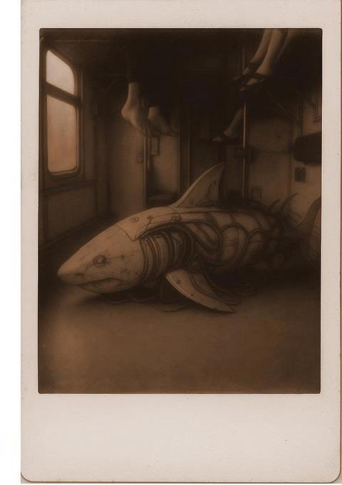 «Мама, я оказался в царстве вони и храпа, и я не до сих пор не пришёл к пониманию, храпит ли вонь или воняет храп. Возможно, разницы нет. Я в поезде, еду по работе в Лиссабон. Опоздал, само собой, успел только запрыгнуть в последний вагон – он странный, мама, – но следующий плацкартный ещё страннее. Сразу за загоном проводника, слева, из трёх купе сделано одно, просто снесли перегородки, убрали лежанки и застелили пол матрасами, и там спит пятиметровая акула-робот — плод науки и безумия, надо думать, амфибический нонсенс в сером плаще, к воротнику которого приколот круглый значок «Выгул запрещён»; остальные места заняты клошарами самого ортодоксального толка — серые кепки, засаленные манжеты, заросшие щетиной носогубные складки, – и все спят. Смогу ли я стать прежним после увиденного, мама, я не знаю. Как папа, кстати? Твой ПэПэ »,