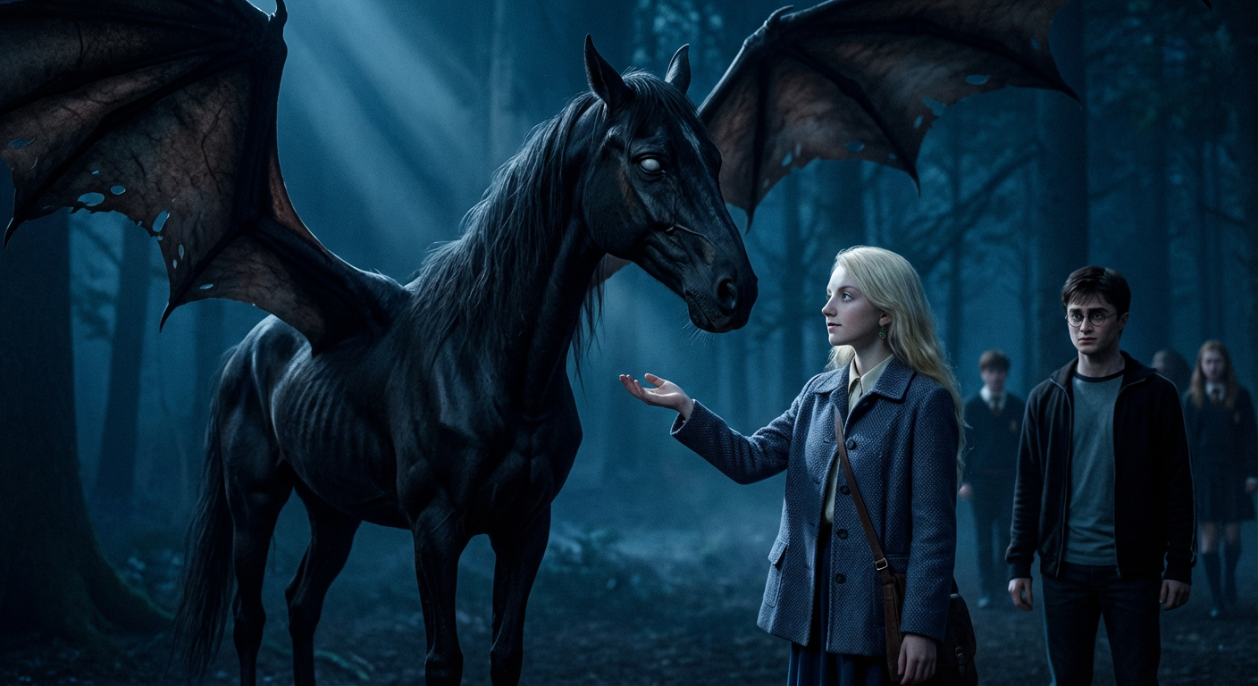 Фестралы стояли у кромки Запретного леса. Они не выглядели угрожающими. Скорее, они выглядели уставшими. Чёрные, костлявые, с крыльями, похожими на рваную кожу зонта. Их белёсые глаза не блестели, как у лошадей. Они смотрели не на Полумну, а сквозь неё, словно она была сделана из дыма.