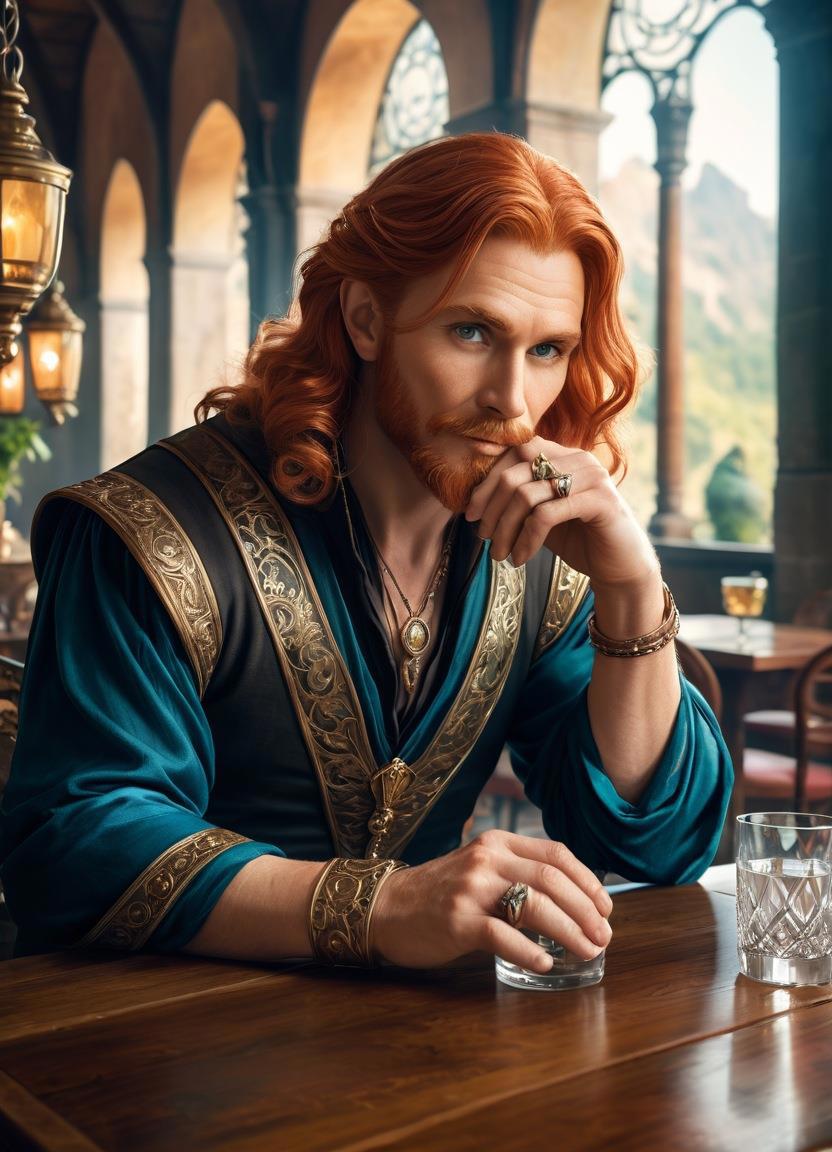 — А знаешь, странно выглядел. Как актёр в историческом фильме. Волосы кудрявые и длинные, ниже плеч. И ярко-рыжие. Только это почему-то не бросается в глаза, я только сейчас вспомнила. А ещё перстни массивные, на каждом пальце.