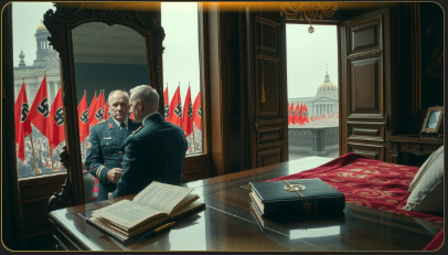 Мой адъютант Юлиус Шауб почтительно стучит в дверь, напоминая, что через час у меня встреча с Геббельсом и Герингом, а британский премьер-министр Чемберлен запрашивает срочные переговоры. В голове проносятся мысли — каждое моё решение может изменить судьбы миллионов, но любая неосторожность, любое отклонение от ожидаемого поведения фюрера вызовет подозрения.