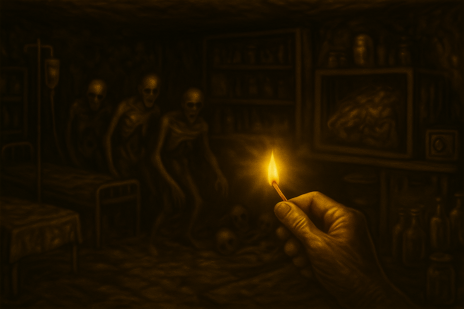 Идя по пустым улицам, я обратила внимание на дом, который в отличие от остальных довольно неплохо сохранился, окна были целы, а дверь прочно стояла на своём месте. Двигалась я медленно, вслушивалась в каждый скрип. Внутри было довольно темно, а также стоял неприятный запах, которого не было на улице... Я хотела включить фонарик, но он не работал, а после, когда раздался чей-то стон, я подняла взгляд.