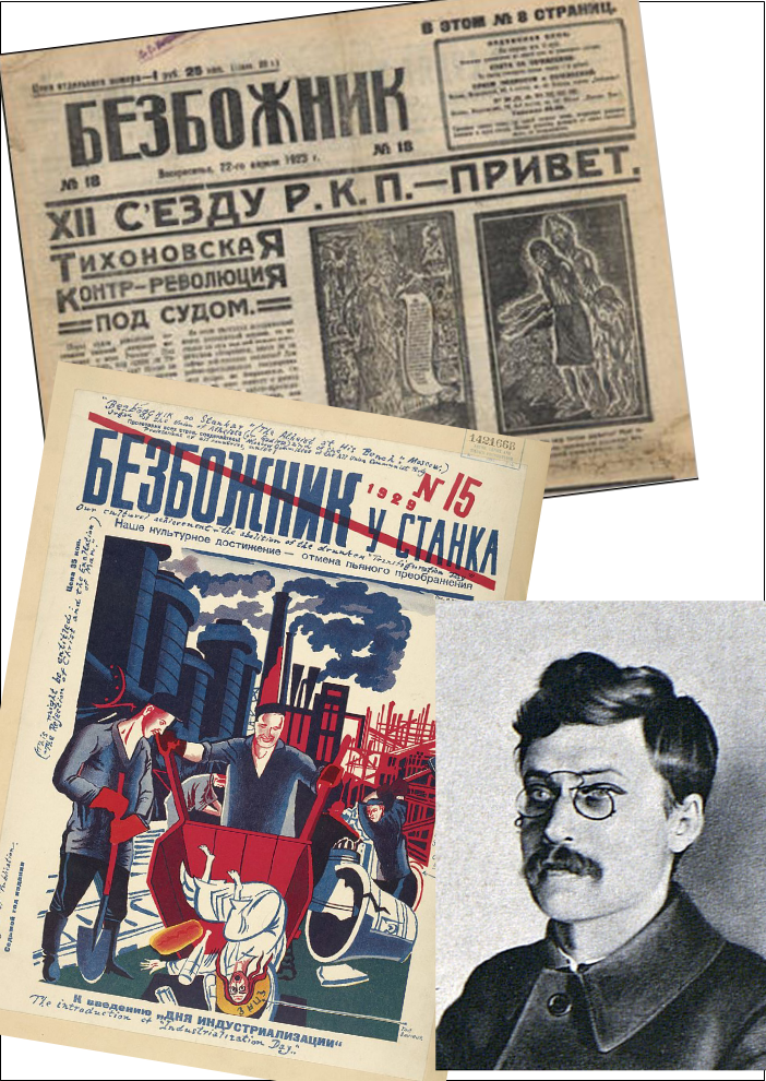 Но журнала «Богоборец» никогда не существовало! Зато гигантскими тиражами и совершенно бесплатно в то время выходили журналы «Безбожник», «Безбожник у станка», «Безбожный крокодил», «Атеист». Редактором всех этих журналов являлся Емельян Михайлович Ярославский (настоящее имя Миней Израилевич Губельман, 19.02./03.03.1878 – 04.12.1943) – революционер, идеолог и руководитель антирелигиозной политики в СССР, председатель «Союза воинствующих безбожников».