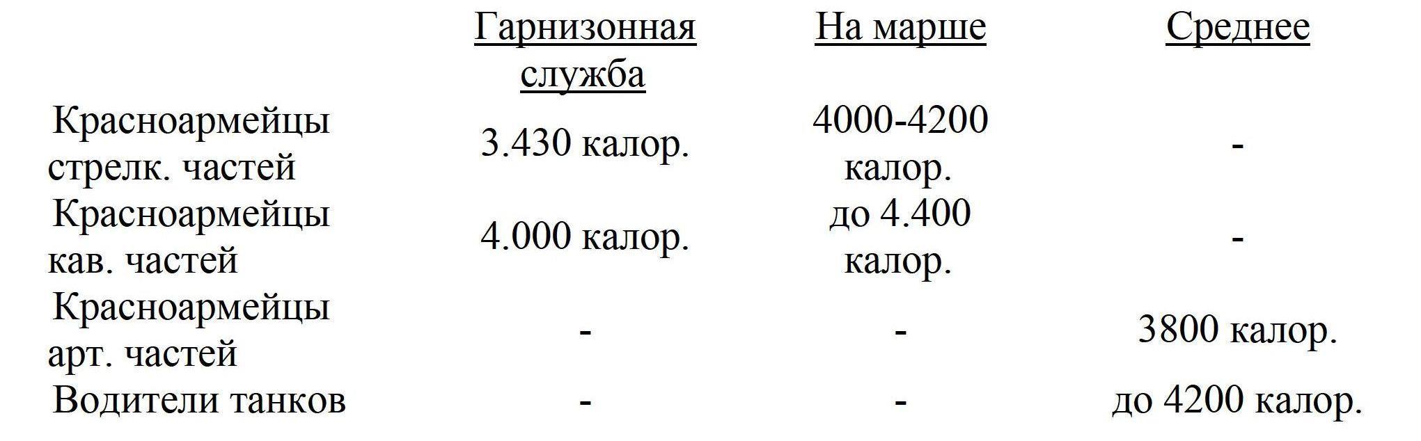 Калорийность усиленного пайка РККА находится почти на уровне энергетических трат тех категорий бойцов, которым он выдается, и требует лишь незначительного повышения.