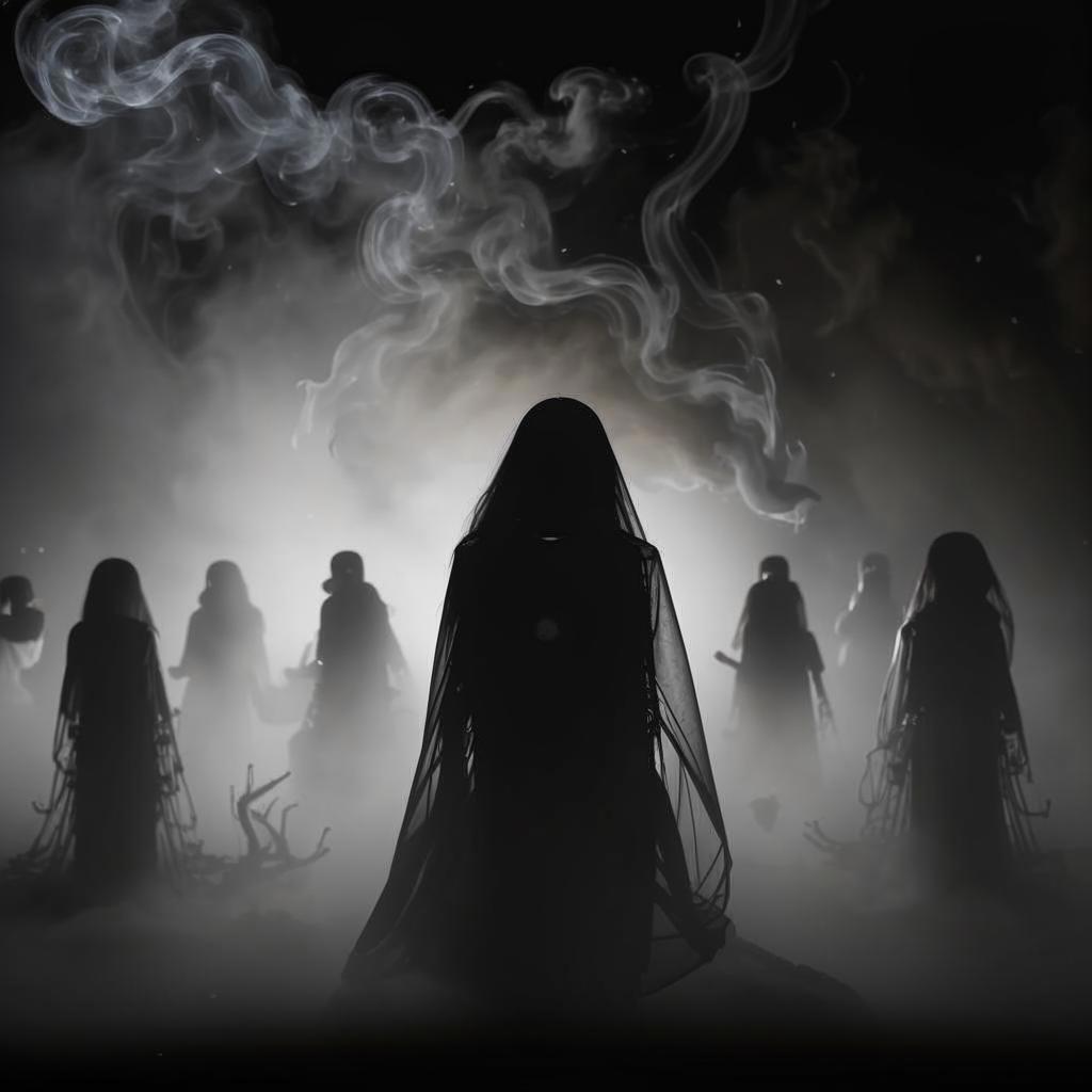 Яркая вспышка молнии на мгновение осветила все вокруг и мы на долю секунды увидели ее. Рваный грязно-серый саван с уродливыми кровавыми разводами слабо покачиваясь парил в коридоре. Глаза горели красным потусторонним огнем, а вместо рта зияла огромная черная дыра, из которой и доносился скрипучий загробный голос призрака. Света, от горевших свечей, оказалось достаточно, чтобы рассмотреть призванного духа. Сущность медленно вплыла в комнату, а когда я опустила глаза, то увидела что у этого существа вообще нет ног.