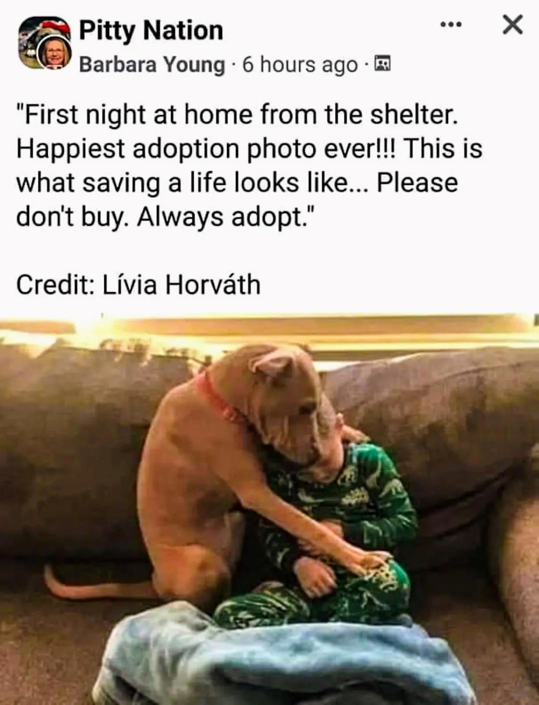 "Первая ночь дома из приюта. Самая счастливая фотография "усыновления" собачки в истории!!! Вот как выглядит спасение жизни... Пожалуйста, не покупайте. Всегда усыновляйте/удочеряйте". Фото: Ливия Хорват