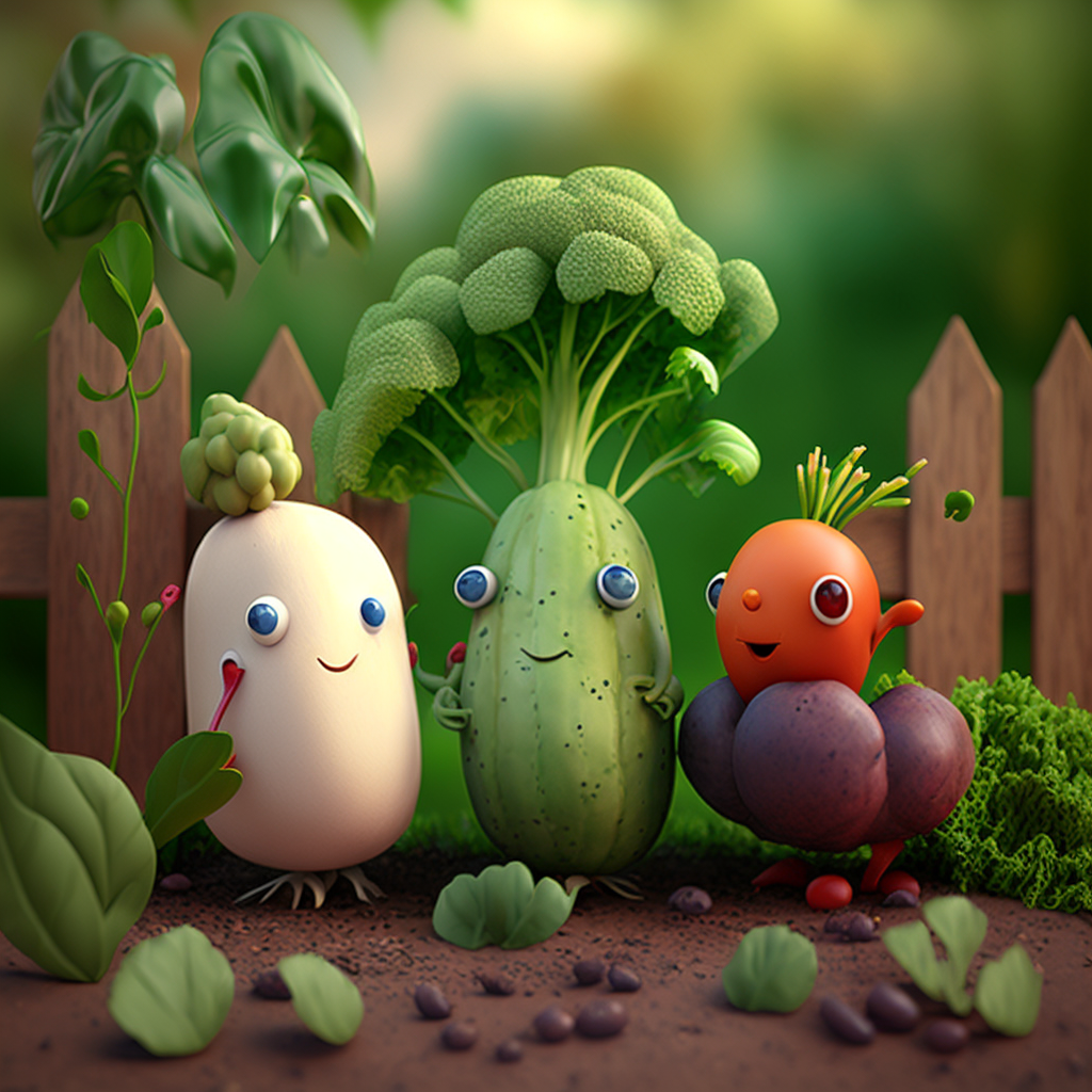Здесь растет свежий огурец со спелыми помидорами. А там сладкий горох и сочная редиска - радуют глаз. Все они - друзья на грядке, разные, но близкие. Каждый со своим характером, но вместе - веселая и озорная грядка.
