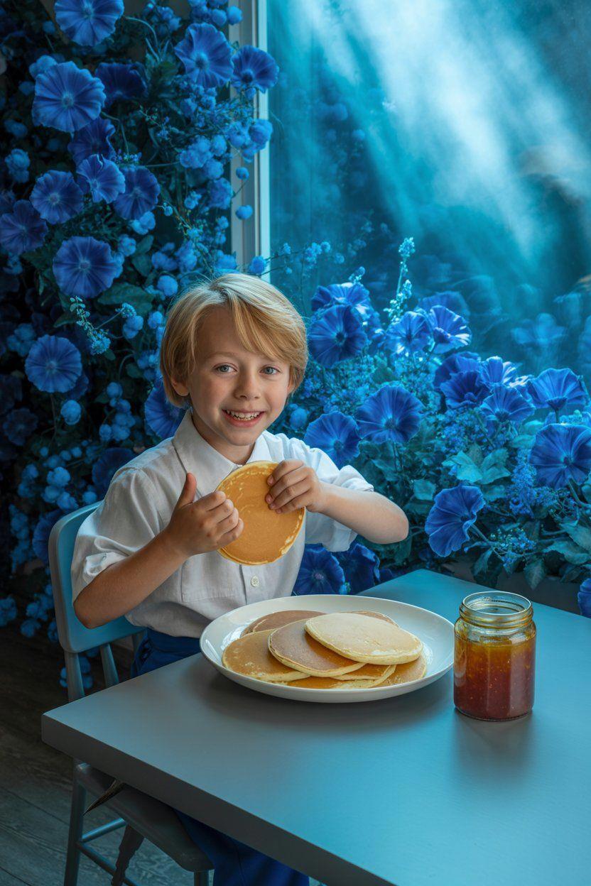 Лиза зашла в дом и увидела, что в большой светлой комнате за небольшим круглым столом у окна сидел симпатичный мальчик, ровесник Лизы, и с аппетитом ел блины.