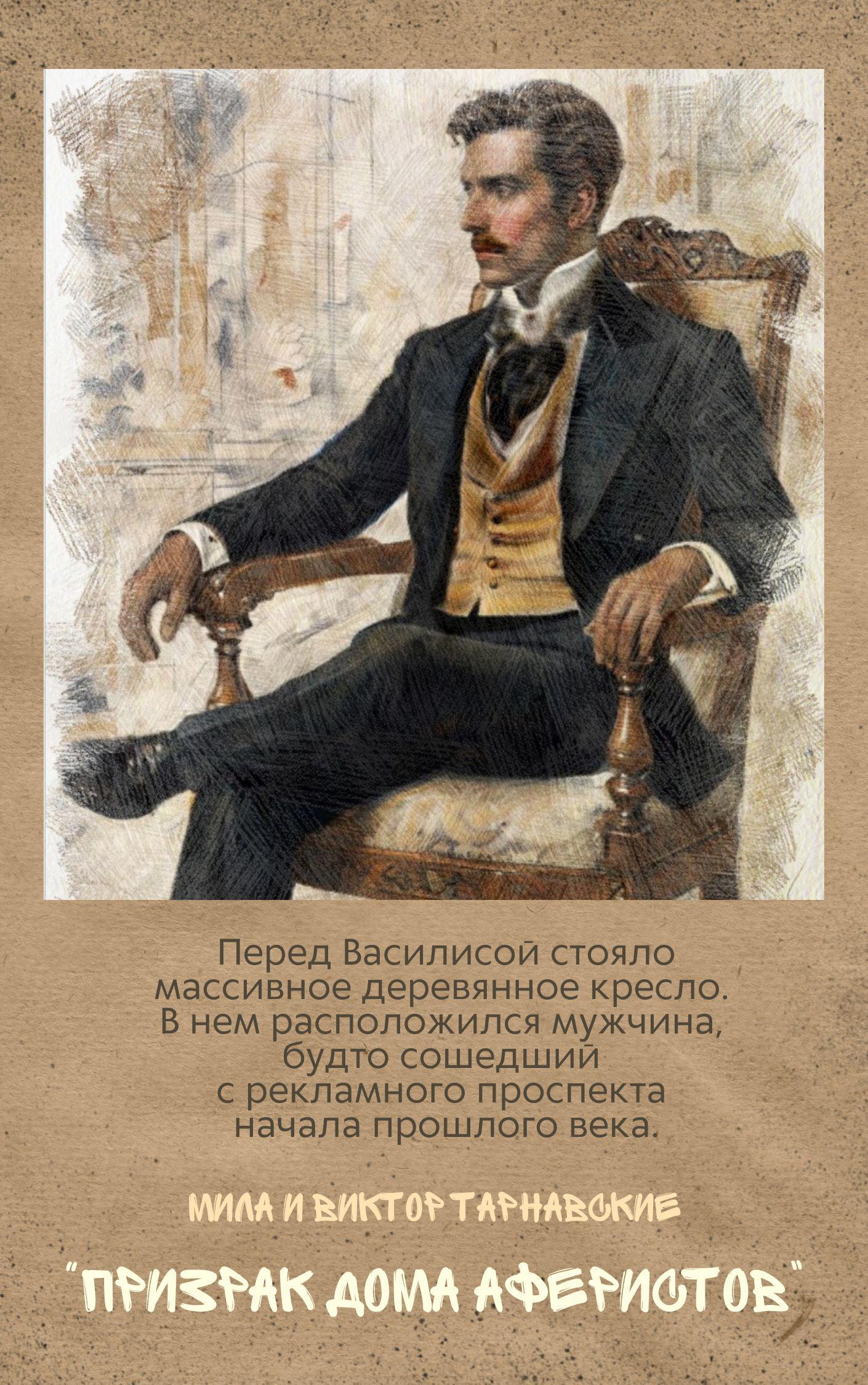 Прямо перед ней стояло массивное деревянное кресло, неудобное даже на вид, со странно изогнутыми подлокотниками. В нем расположился мужчина, будто сошедший с рекламного проспекта начала прошлого века. С щегольскими усиками, в галстуке и жилете, из кармана которого свисала золотая цепочка часов. Поверх жилета была надета домашняя бархатная куртка цвета темного шоколада. В руках незнакомец держал газету — дореволюционную, с «ятями» и «ижицей».