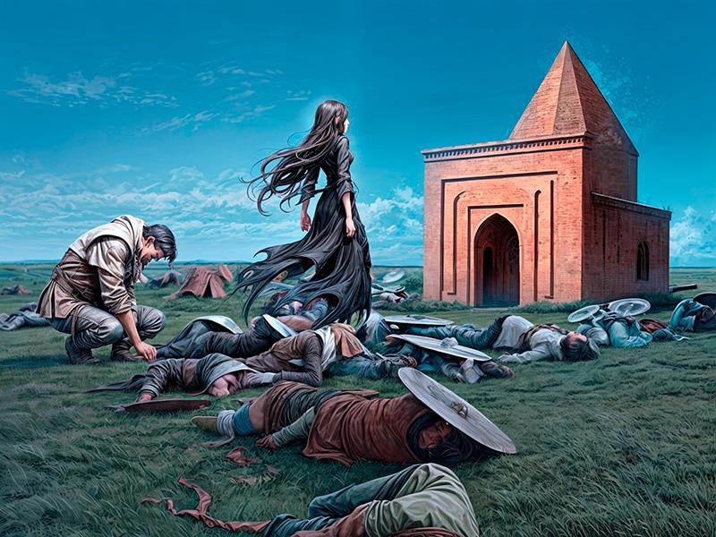 По преданиям, он единственный выжил в той битве, он был бесстрашным воином и, казалось, дружил со смертью. Говорят, он сдался, когда его любовь умерла. Но тимуридам не удалось разлучить их, так и сидел он возле неë день и ночь.