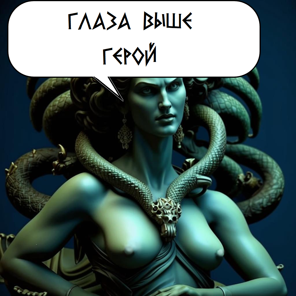 В те времена ещё топтали Землю многие потомки Титанов (но Олимпийцы активно работали в этом направлении), в том числе три Ghорghоны, прекрасные (что странно, из-за фараоново-ланнистеровского метода производства потомков) дочери Форкиса и Кето. Дев звали Эвриала [что значит прыгучая], Сфено [а эта - могучая] и самая известная из них Медуза [то есть стражница]. Третья из сестёр была смертной, а две старшие - нет. И видимо по причине слабости Медузы, Поси́dhонас, повелитель греческих морей, решил именно её выбрать для того, чтоб одарить своей божественной любовью.