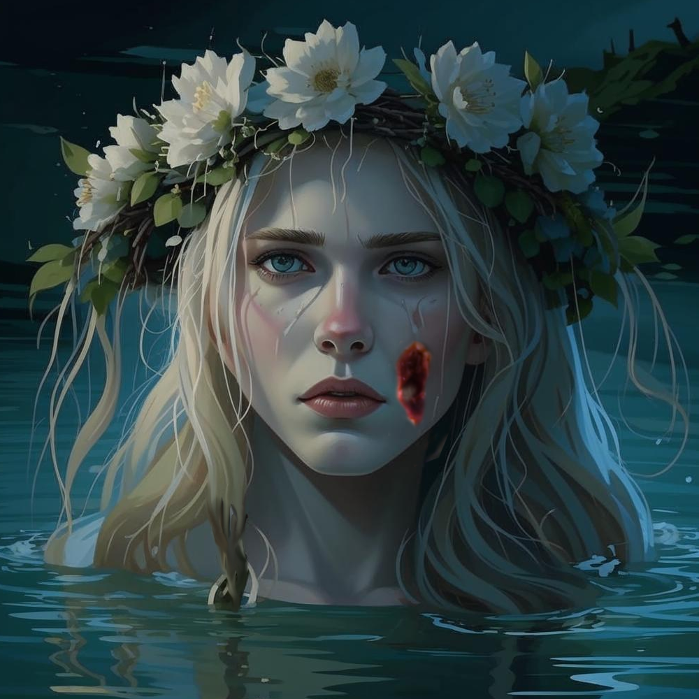 Лицо злое, волосы длинные и светлые, на макушке венок из водяных лилий и кувшинок. А на щеке кусок кожи содран, да так что зубы видно. Выходит дальше женщина из воды, а Пётр задом пятится не нравится ему ночная гостья, от слова совсем. Вот и руки худые да тело из воды показались, как будто ночная сорочка или саван на плечи накинут, белый и изношенный. Груди под саваном огромные как дыни, но всё равно больше на лицо сердитое, Петя смотрит, слишком уж взгляд недобрый. На берег уж вылез полностью, запнулся, и пополз, встать времени нет, а она за ним шагает неспешно так. Видно что в волосах тина застряла, и ногти длинные и чёрные [в те времена лак такого колеру даже альтушки не пользовали, поэтому чёрный ноготь - верный признак нечисти был], уж и удочку в бабу кинул, и полено тлеющее из костра, ей всё нипочём, и крестом с иконкой перед ней махать пробовал, да не работают святые символы в руках неверующих, а молитв он и не знал. Вдруг воздух занюхала женщина страшная, и говорит: "Полынь или петрушка?", а сама ухмыляться начала, да так что из раны на щеке кровь бурая потекла (может и не , бурая, но в темноте кто разберёт то). Пётр и не понял сначала про что она спрашивает, а потом как понял, и отвечает: "Полынь, полынь". "Сам отсюда сгинь" - говорит ему дева речная, и обратно в воду пошла. И так жутко стало мужику что удочку оставил и котелок с рыбой живой тоже и как был, без штанов, в деревню помчался. Жена ему может и поверила, но советовала не рассказывать никому, а он взял и растрезвонил. И вывесил председатель колхоза его имя в списке алкоголиков и суеверных на стене позора. То-то же.