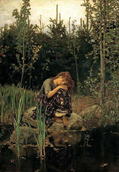 Бабуля растопила самовар, а надо сказать это целая технология, и напекла пирогов, и я клянусь лучше, чем бабушка пироги не пёк никто и никогда лучше печь не будет. Мы с братцами сидели и хомячили, а бабушка решила развлечь мелких историей. Деревенский дом был украшен репродукциями старинных картин, одна из них - "Алёнушка" Виктора Васнецова, и показывая эту картину бабушка вела свой рассказ.