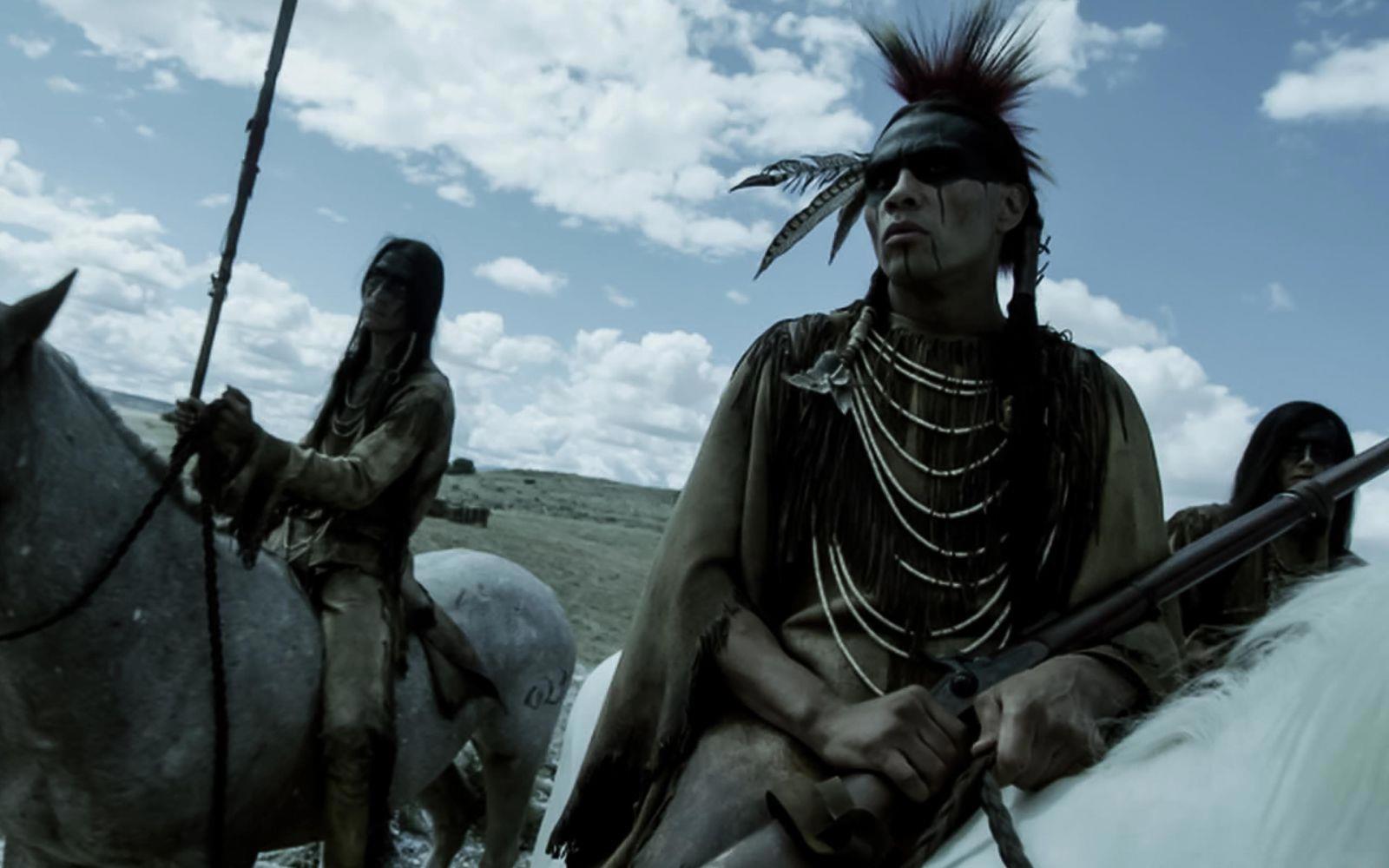 Точно также ответственно, как операторская группа, к своим участкам ответственности подошли гримеры, декораторы и каскадеры. Индейцы в замше живописны, индейцы на тропе войны истинно ангелы смерти, реднеки грязны да подраны по-настоящему, картузы кавалеристов огромны дабы закрывать уши в снежную бурю, мормоны выглядят монохромно-душными пингвинами, а первая же бойня на полянке являет отличную коллаборацию всех причастных.