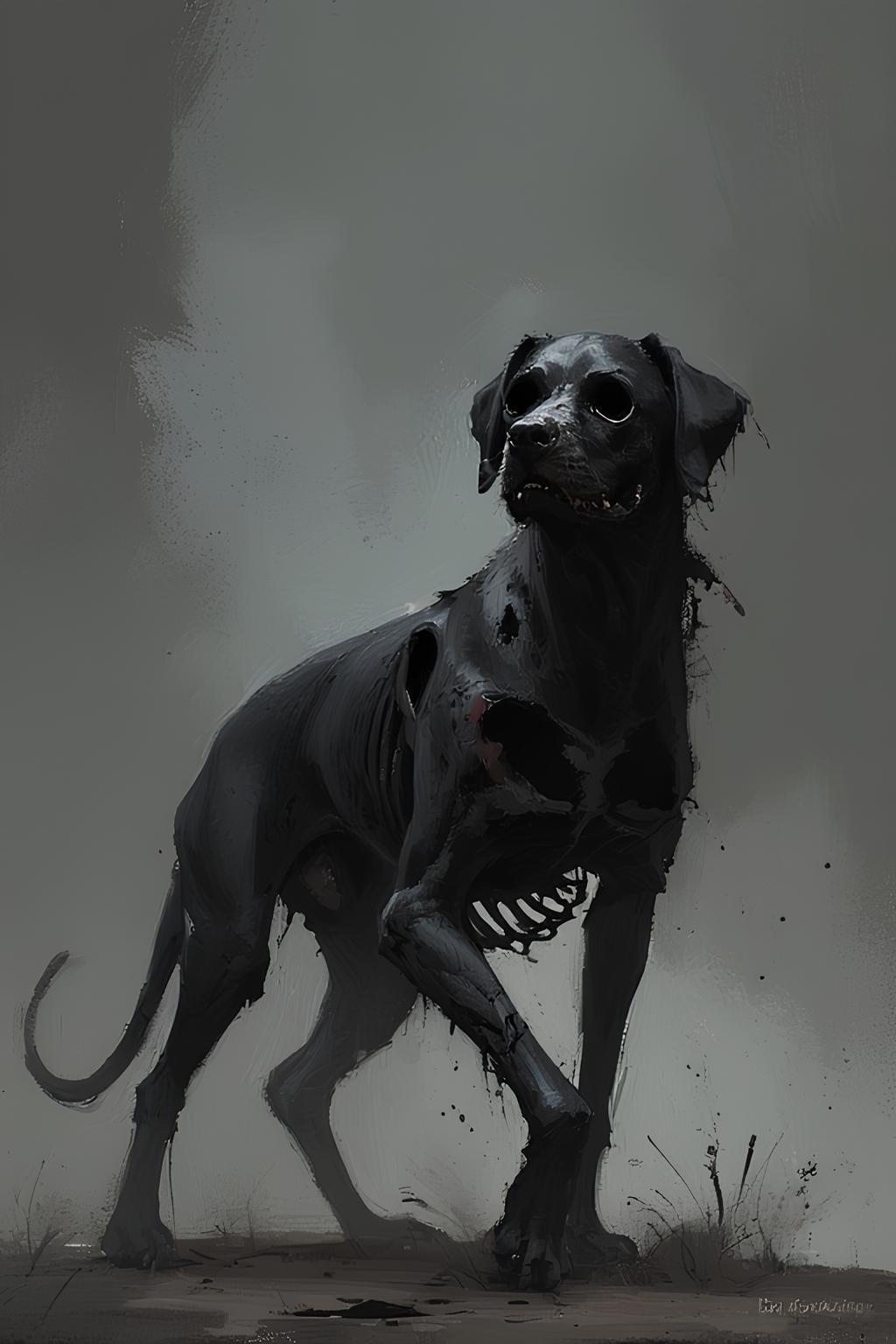 Пёс не бежал, не рычал. Он плыл над полом, словно призрак, сотканный из тьмы и лунного света. Его тело было разорвано: рёбра торчали, как обломки корабля после шторма, из живота проглядывали голые кости, а там, где должно быть сердце, тлел уголёк — багровый, пульсирующий, будто последний остаток жизни, не желающей угаснуть.