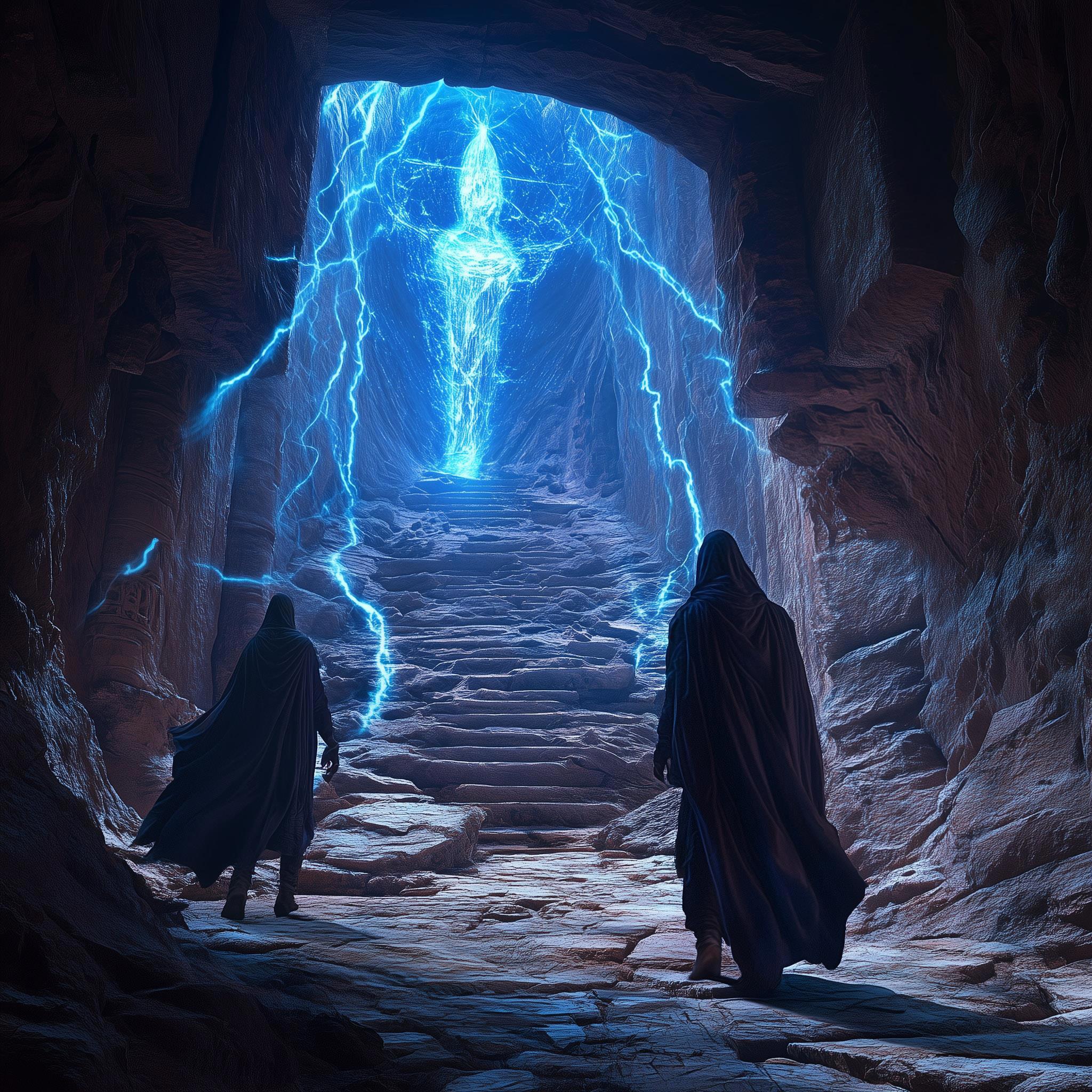 Но Сандариал не остановил Беддоя, почуявшего запах сокровищ. Искатели пробрались через арку и оказались в коридоре столь узком, что двум взрослым людям не разойтись. Стены его были чёрными, как пучина штормящего моря. Их покрывали белёсые линии, которые перетекали на выпуклую поверхность дальнего конца прохода.