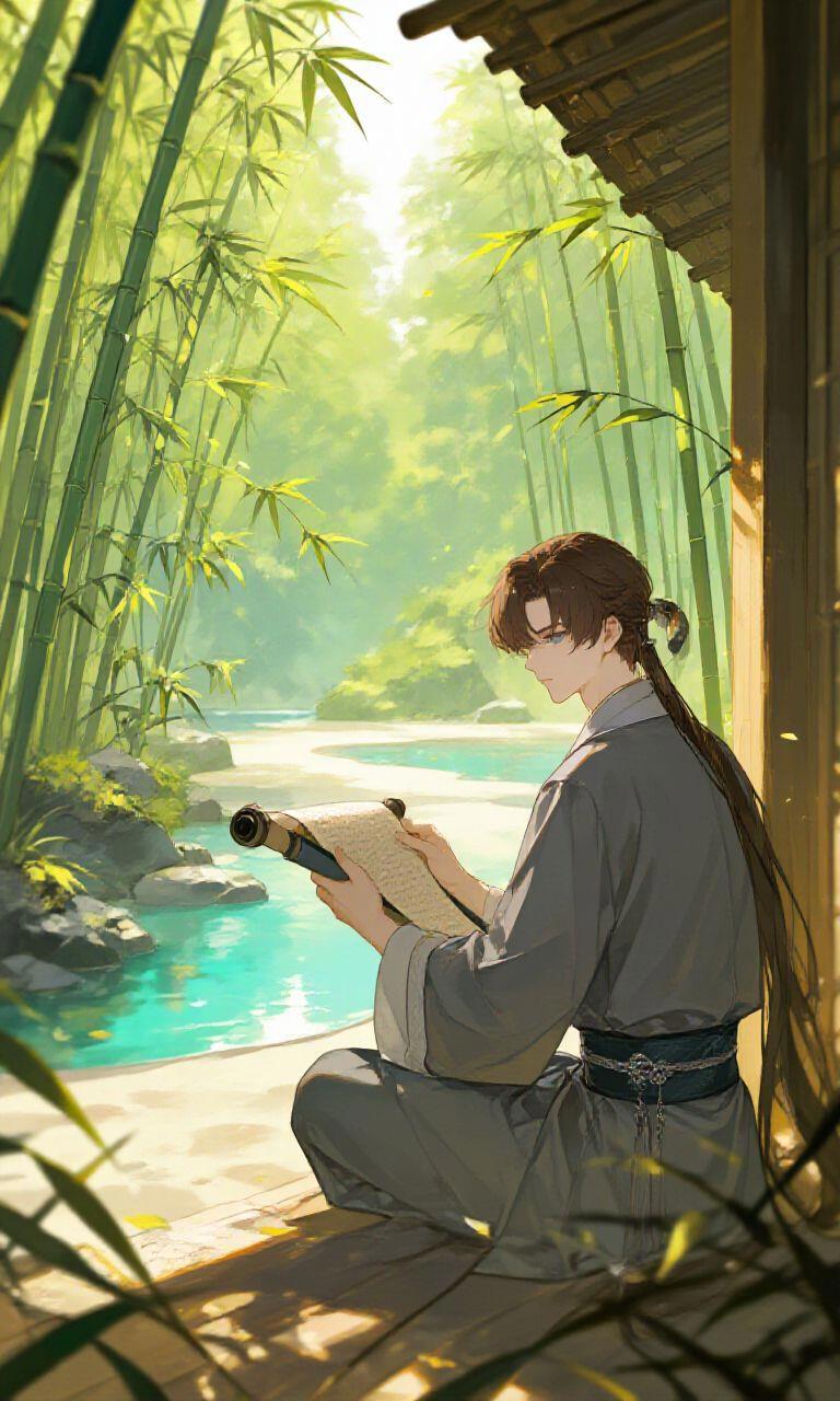 Девушка подошла к грубому домику из бамбука и обнаружила на крыльце странного парня. На нем была бедноватая серая роба Внешнего Ученика, а его волосы были короткие, только с длинным хвостиком сзади. Он сидел в позе медитации, рассматривая какой-то свиток в своих руках.