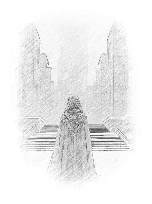 Один в маске из металла с длинной светлой из цвета облака одежды и огромным мечом, который был на поясе и висел у рыцаря спросил: