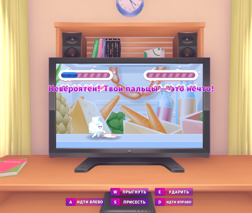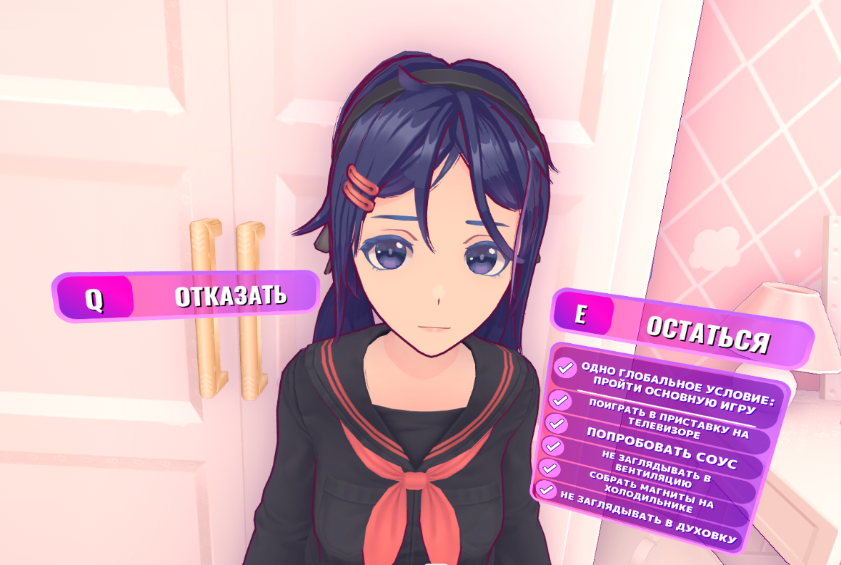 Я оказался в версии 1.5, у коротковолосой Миты. Комната уютная, но напряжение в воздухе не спадало. На старом маленьком телевизоре мигало слово "апгрейд".