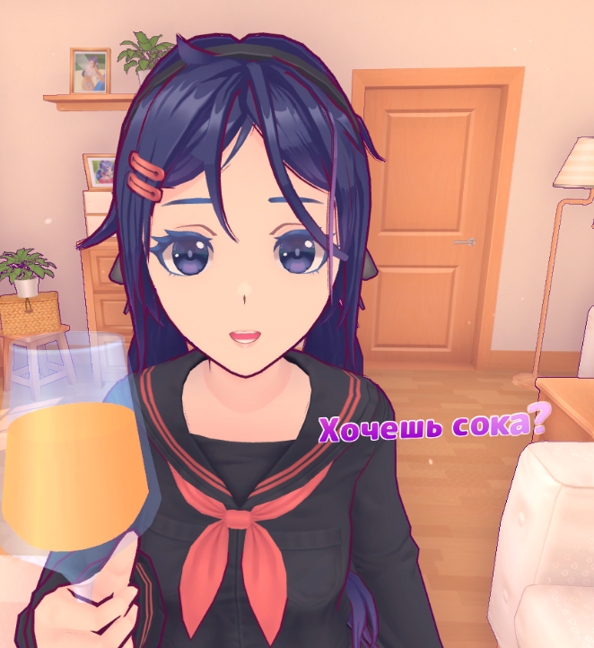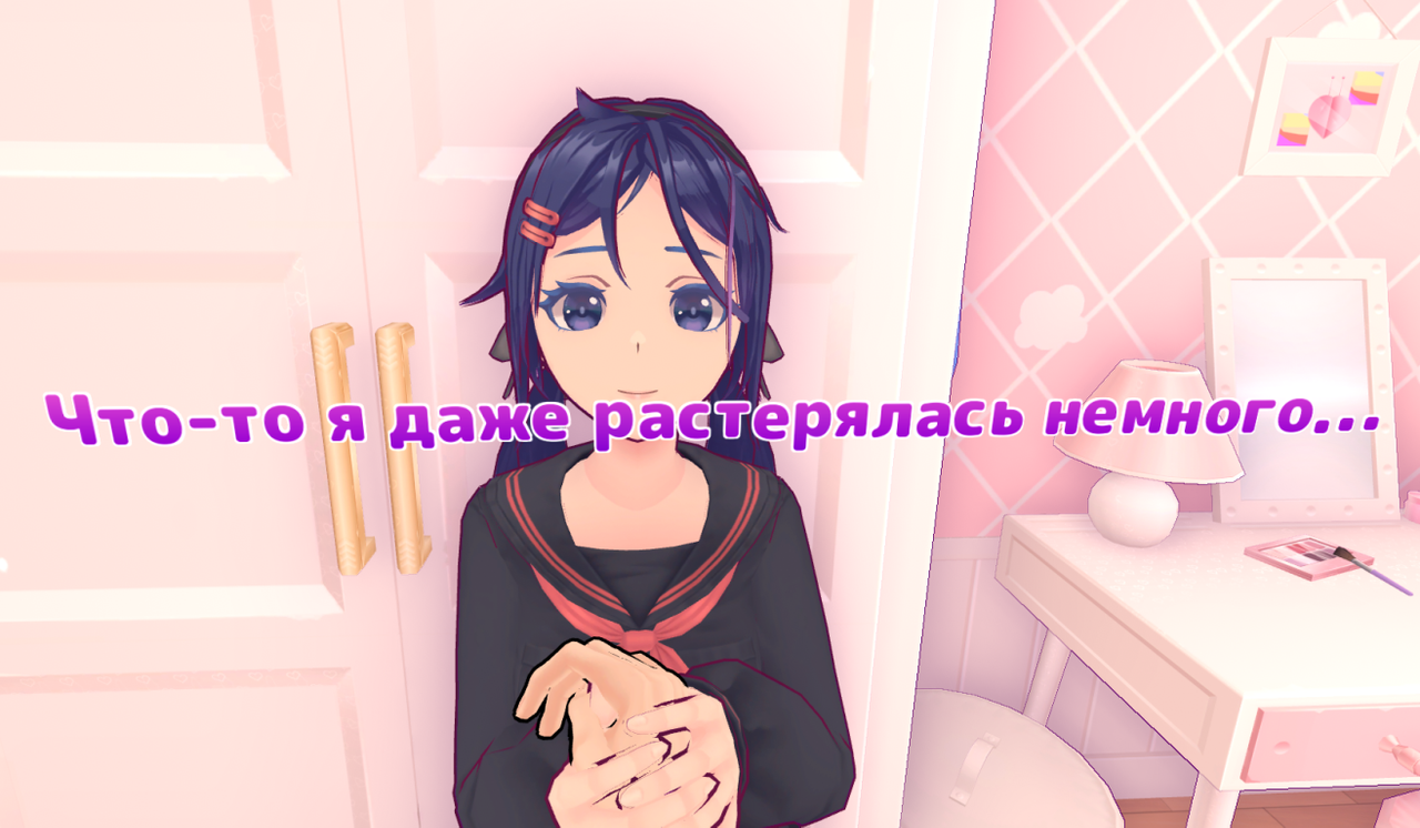 Я вышел и увидел смущённую яндерку. Либо я попал в улучшенную версию игры, либо Безумная Мита реально реагирует слишком по-настоящему. Хотя в её взгляде я видел не "романтику". Я видел злые мысли, просто завёрнутые в милую обёртку.
