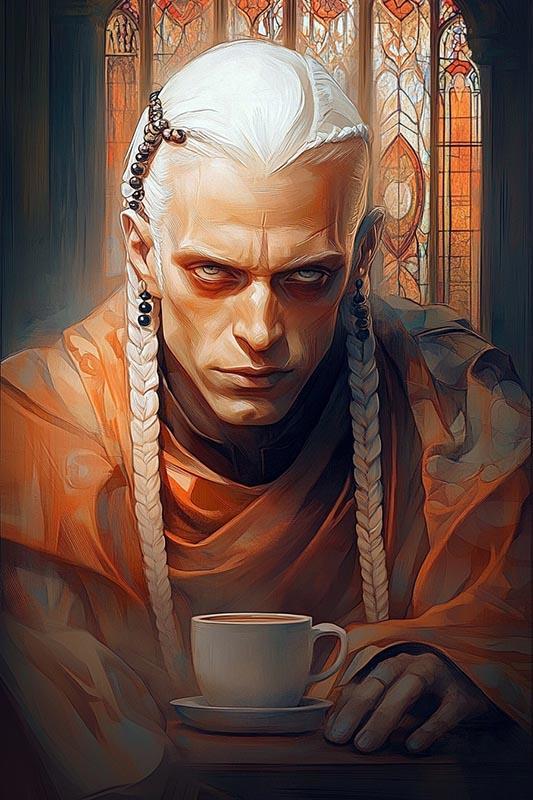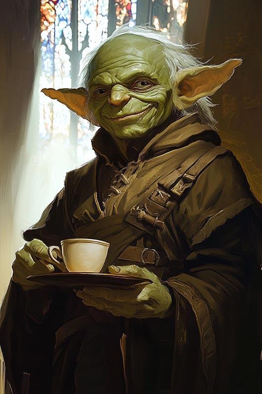 — Как было мне завещано отцом, — строго отвечает гоблин, — Франциско Шнобелем Четвёртым, в кофий следует класть две ложки белого порошка из второй банки слева. Таков рецепт, господин, и он исполнен в точности.