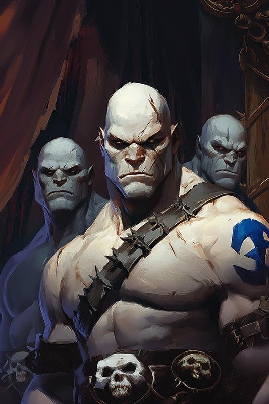 Тройняшки-голиафы, лысые и широкие в плечах полувеликаны, отличаются не только высоким ростом, редкой уродливостью и физической силой, но и фанатичной приверженностью сцене, а также непререкаемой верой в гений хозяина. Их мир — это театр, Полчек — творец его, а значит, равен нефилиму как минимум. И спорить с ними об искусстве не стоит, потому что голиафы хотя и не злы, но вспыльчивы. Они также и отходчивы, так что, хорошенько отколотив спорщика оторванной у него же ногой, они его неизменно прощают и искренне плачут на похоронах.