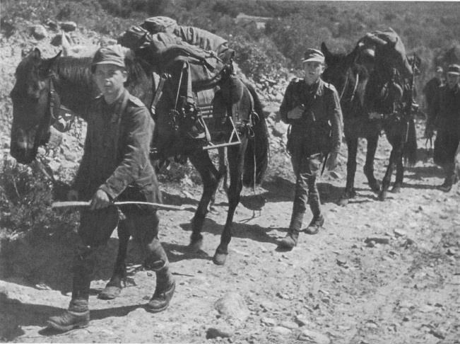 В горнострелковых подразделениях вермахта вьючные лошади и мулы были основным транспортным средством.