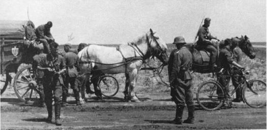 Июль 1941 года. И, если лошади и конные повозки активно использовались до самого конца войны, велосипеды сошли со сцены к зиме первого года "войны на Востоке".