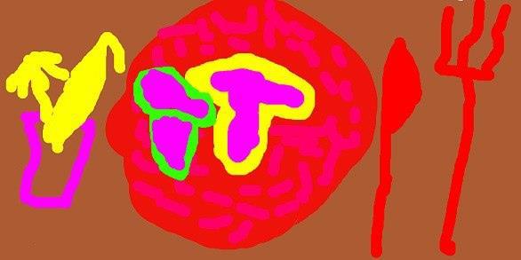 Картина передает идею радости и праздника. Светло-коричневый фон символизирует тепло и уют, а яркие цвета пиццы и бокала добавляют ощущение энергии и движения. Сочетание цветов грибов подчеркивает идею о том, что даже самые простые вещи могут быть наполнены радостью и красотой. Кетчуп на пицце добавляет ощущение вкуса и аппетита. Столовые приборы красные добавляют ощущение уюта и комфорта.