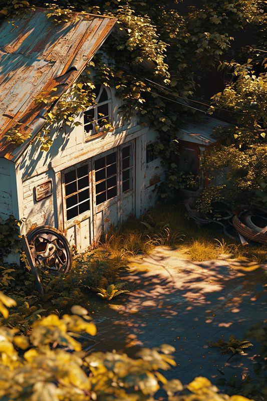 Убедившись, что никаких признаков засады нет, подъехал к воротам. Они оказались не заперты, просто притворены. Открыл створку, закатил квадр, закрыл. Где проход? А там же. Бывает, что он в задней двери, во вторых воротах или просто на стене, а бывает вот так — закрыл, сосредоточился, открыл в другое место. Не знаю, в чём разница. Как по мне, никакой.