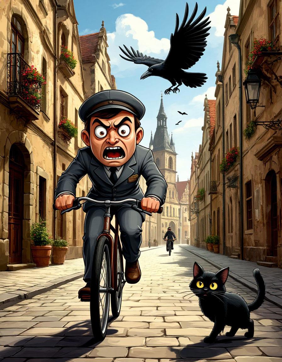 "Куда может так спешить почтальон? — задал себе вопрос кот. — Нет, правда: пожарные летят на пожар, полицейские — на место преступления, доктора — к больным, по срочному вызову… А какое известие в сумке почтальона требует такой бешеной скорости? Он же не знает содержания писем.
