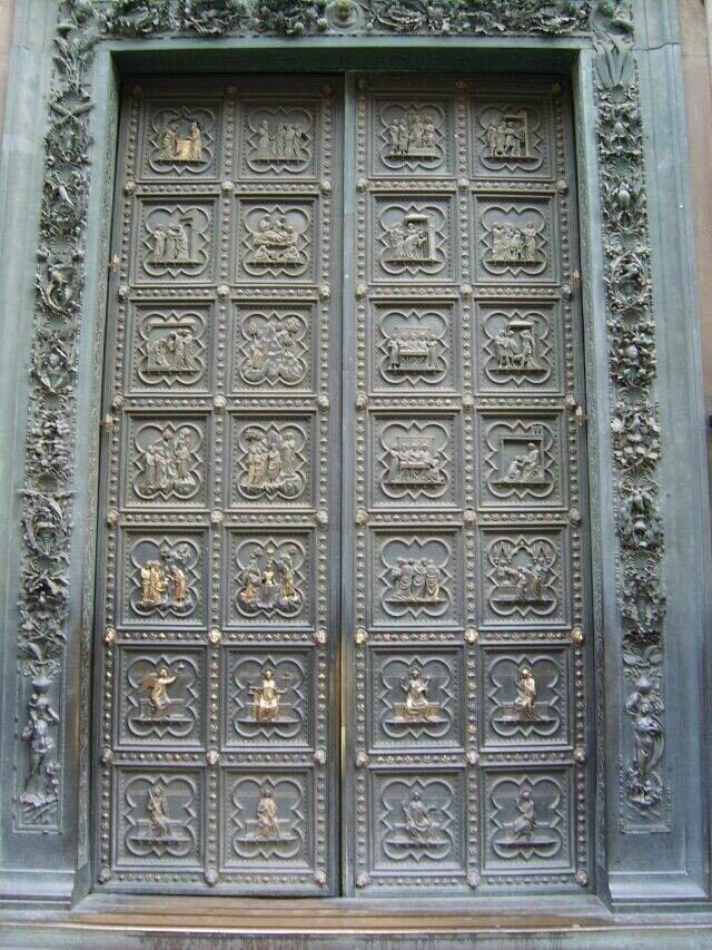 На свои врата А. Пизано потратил 8 лет. Над двумя вратами Гиберти работал 48 лет, почти полвека — большая часть его жизни.
