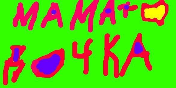 Рисунок Маринетт Мортем «Мама + Дочка» выполнен в ярких и насыщенных цветах, что создает атмосферу радости и теплоты. Фон картины ярко-салатовый, что символизирует свежесть и оптимизм. Надпись «Мама +» выполнена большими буквами, которые плавно переходят от красного к алому цвету, что добавляет эмоциональной напряженности и страсти. Буквы внутри заполнены фиолетовым цветом, что придает им дополнительную глубину и таинственность.