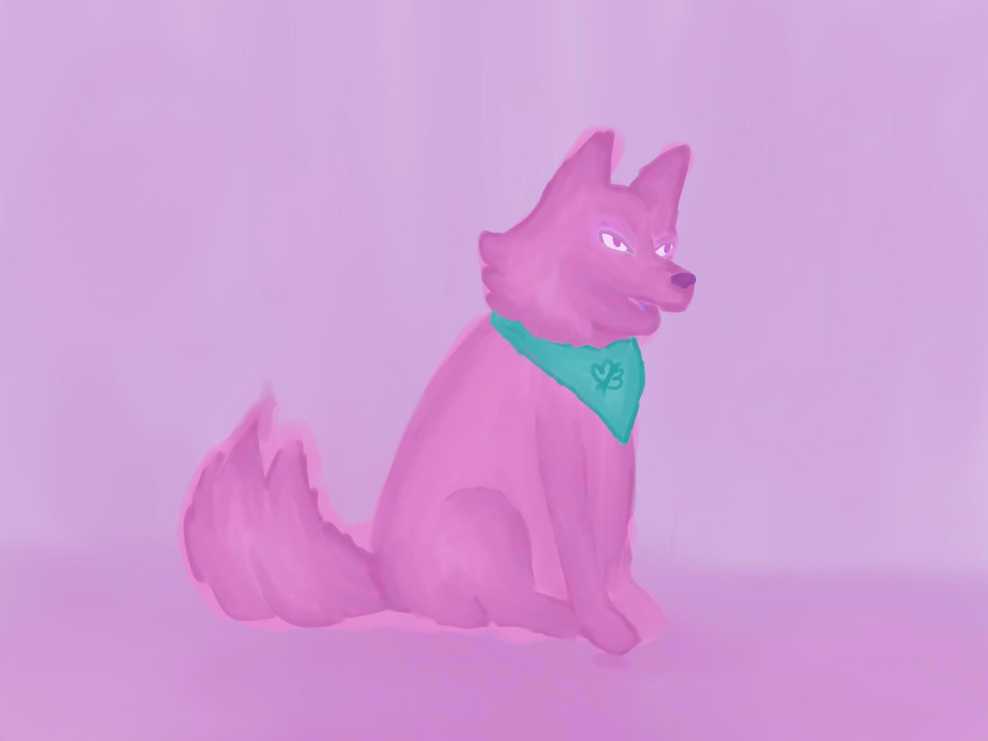 На рисунке современной художницы Маринетт Моротем изображён милый и яркий пёс по имени Огонёк. Он сидит на оранжевом фоне, его хвост напоминает языки пламени, а взгляд устремлён влево. Вместо ошейника на нём зелёная бандана с рисунком бабочки, которая добавляет рисунку игривости и лёгкости.