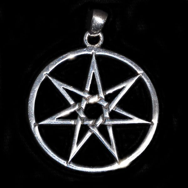 Странный амулет в виде семиконечной звезды. Явно старинный. Изначально серебряный наверное. Весь патиной покрыт.