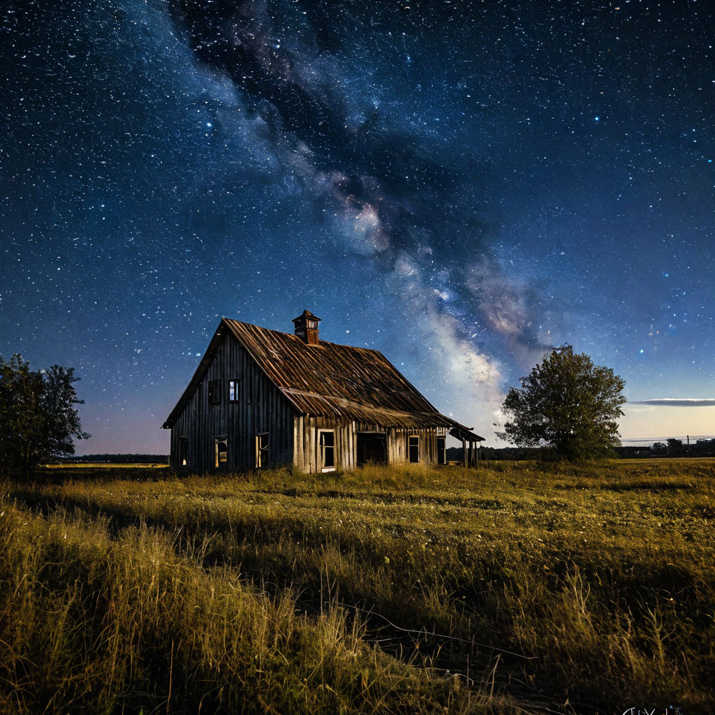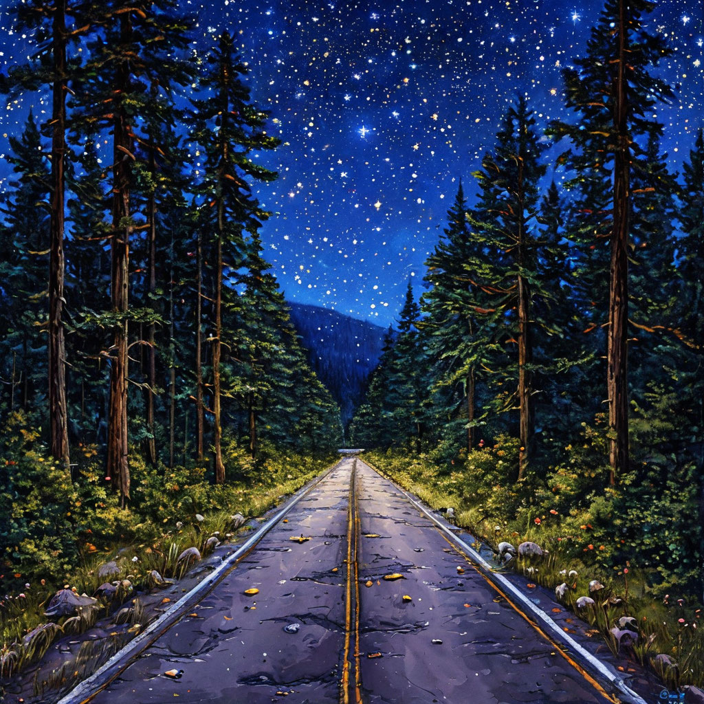 А небо какое! Темное. Звёзды яркие. И много их. В Питере на даче у знакомых бывал, там совсем не так. И млечный путь здесь почти как фонарь. Жаль деревья над дорогой плотно нависают закрывая от источника света.