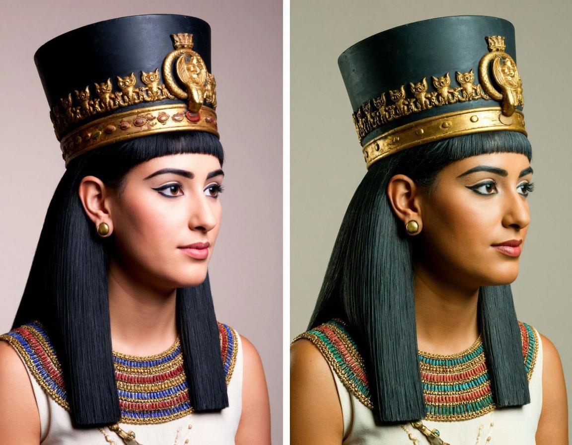 Хронологически использование псехент + хер-хр женщинами было единичным: до Хатшепсут — не зафиксировано; после неё — только у Нефертити в Амарне (ок. 1345 до н.э.), но в сильно модифицированной форме (корона кепеш, а не псехент). У Клеопатры VII (1–30 гг. н.э.) головные уборы не имели юридической силы — решения скреплялись только печатью и подписью.