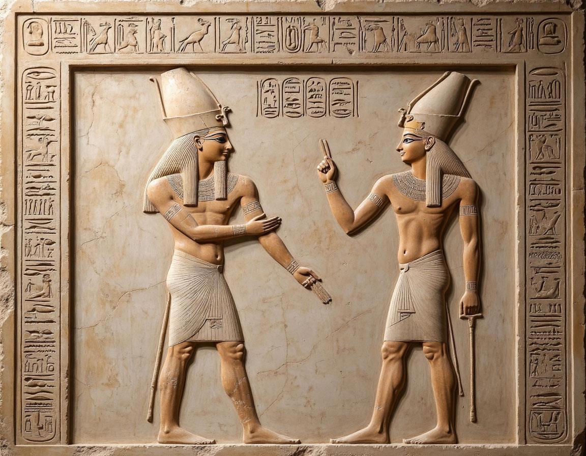 Таким образом, двойная корона и псевдоборода Хатшепсут не являются «маскулинной имитацией» или «политической пропагандой», а представляют собой юридически обязательный комплект регалий, без которого её решения не признавались равными фараонским. Их использование в текстах и изображениях — не символический жест, а фиксация условия действительности акта, аналогичная современному требованию «подпись и печать». Именно эта институциональная норма — а не личная воля или религиозная доктрина — обеспечила легитимность её правления в течение 21 года и признание преемниками.
