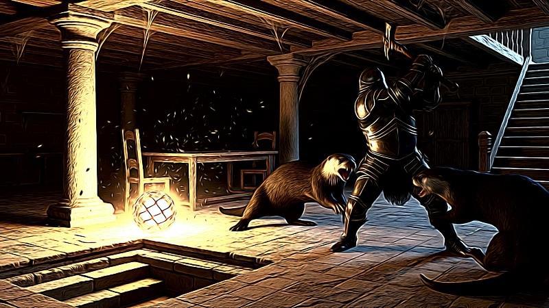 Мужик схватил стул и огрел по голове вторую тыдру, которая яростно грызла латный наруч, пытаясь нащупать уязвимое место. Ее острые когти на задних лапах скребли по стальному набедреннику, а передние лапы били по руке и даже нащупали место, не закрытое латами. Длинные когти запутались в кольчуге, которая закрывала подмышки.