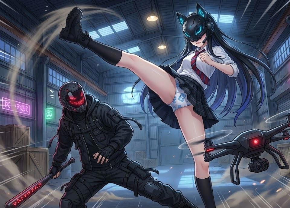 Лиса опустила глаза. Поняла, какой ракурс сейчас был у дрона. Её уши (даже под маской это чувствовалось) вспыхнули пунцовым жаром. Вся её смертоносная аура испарилась, сменившись аурой ядерного стыда и гнева цундере-размеров.
