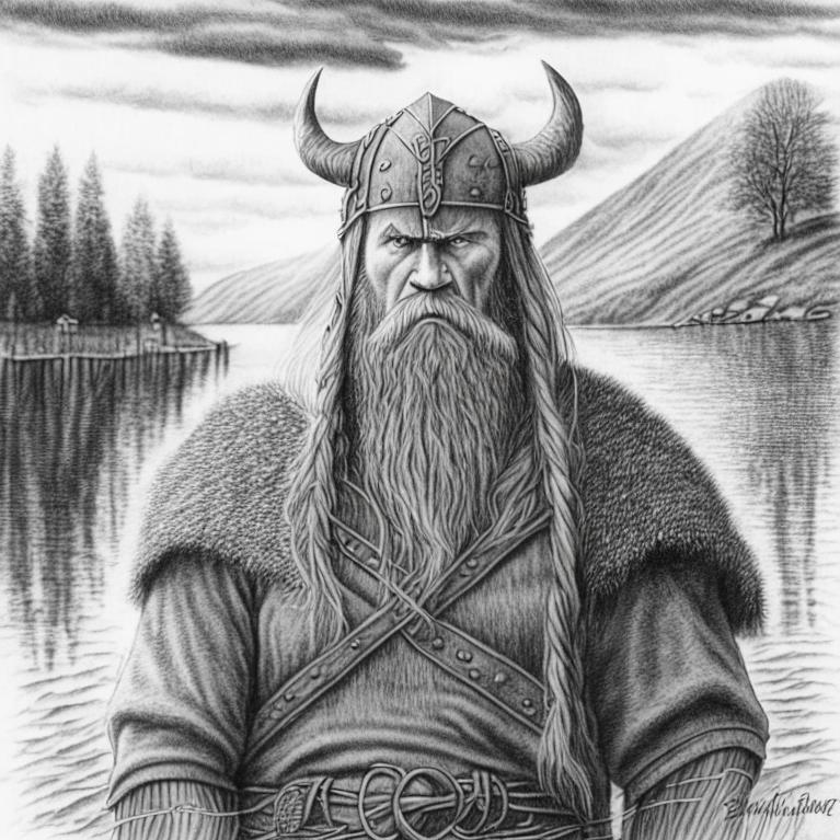 В центре зала на огромном стуле с высокой резной спинкой сгорбился, будто бы ожидая появление незваного гостя, старый тучный викинг. И пусть волосы его были цвета парного козьего молока, а лицо прорезали глубокие морщины и шрамы, похожие на извилистые фьорды - взор его глубоких голубых глаз оставался ясен и твёрд, и в руке своей он хватко держал посох, убористо покрытый до самого медного набалдашника переплетенными стрелами рун.