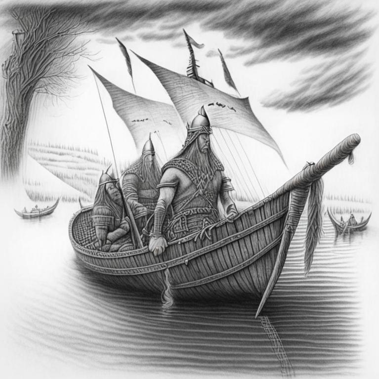 Заря только-только занималась, и над зеркалом водной глади стелился призрачной скатертью кисельный туман, из дымки которого, словно страшный демон Ермунганд, что расправил над миром вечного холода и мрака свои трепещущие на ветру, червонные крылья, показалась, накатывая волну, низкая ладья с резной мордой дракона на носу.