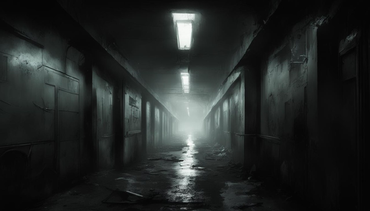 Лифт находился в самом конце длинного, пугающе спокойного коридора. Стены были покрыты застывающей чёрной слизью, остатками последнего самосбора. Герман, уничтожая каждый след зловещей инфекции, пожирал слизь пламенем своего огнемета. Единственным препятствием оставался густой туман, застилавший всё вокруг.