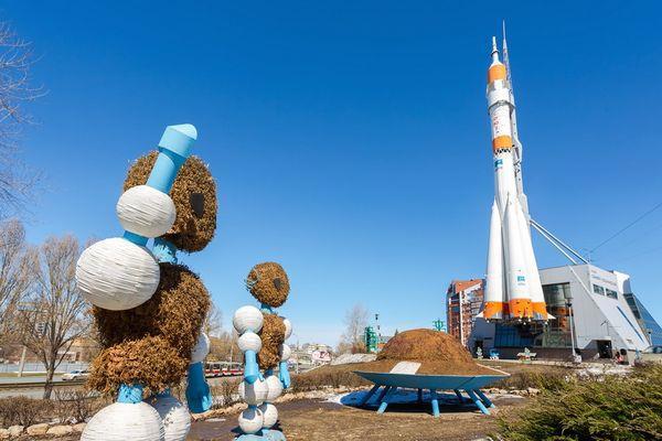 3. РАКЕТА-НОСИТЕЛЬ «СОЮЗ». Установлена 1 октября 2001 года в Самаре в честь юбилея полёта Юрия Гагарина. Весит 20 тонн и возвышается над землёй на 68 метров, а вес удерживающей конструкции 53 тонны. Она была изготовлена ещё в далёком 1984 году, использовалась для тренировки космонавтов. В 1999 году её признали выработавшей свой ресурс и подарили заводу-производителю, там ракету переделали под макет. Уникальному памятнику постаментом служит здание музея «Самара космическая». В июне 2007 года около памятника разбита «Аллея любви», а 24 февраля 2010 года площади перед памятником присвоили имя легендарного генерального конструктора ЦСКБ-«Прогресс» Д.И. Козлова. Новые «Союзы», отправляющиеся сегодня в космос, разработаны в современной России и построены здесь же (в Самаре).
