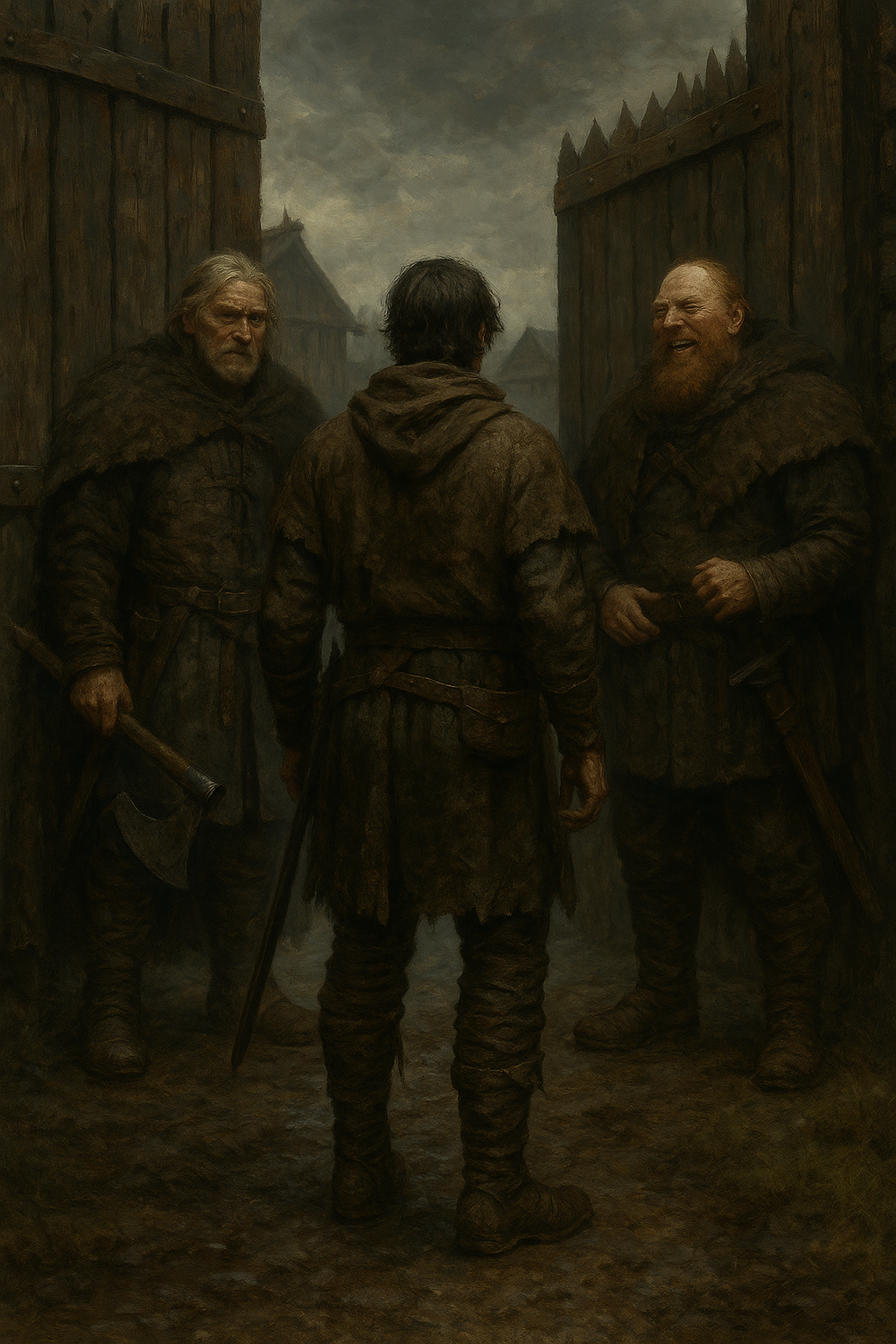 После целого дня волочения ног и вязкой тишины впереди, наконец, показались первые строения Эниса. Деревянные дома, окружённые частоколом. У ворот стояли два стражника. Оба в мехах, с топорами за спиной.