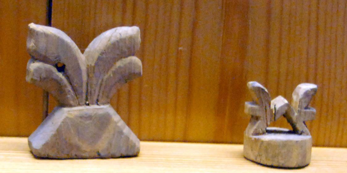 Деревянные резные шахматные фигурки из экспозиции Новгородского государственного объединенного музея-заповедника. Фото автора.
