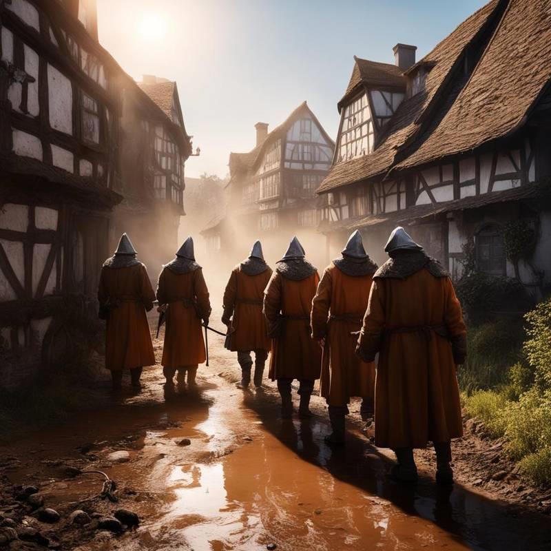 Вот могучий молодой всадник - Тёмный Рыцарь, перед конным строем, одним ударом длинного меча снёс голову в шлеме зрелому Светлому магу-поединщику. Таким ударом владел далеко не каждый маг, ох, не каждый.