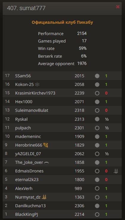 Команда "Пикабу" впервые приняла участие в этом соревновании и заняла вполне достойное 12-е место. В турнире принимало участие большое количество гроссмейстеров и мастеров. Так что для чисто любительской команды 12-е место результат неплохой.